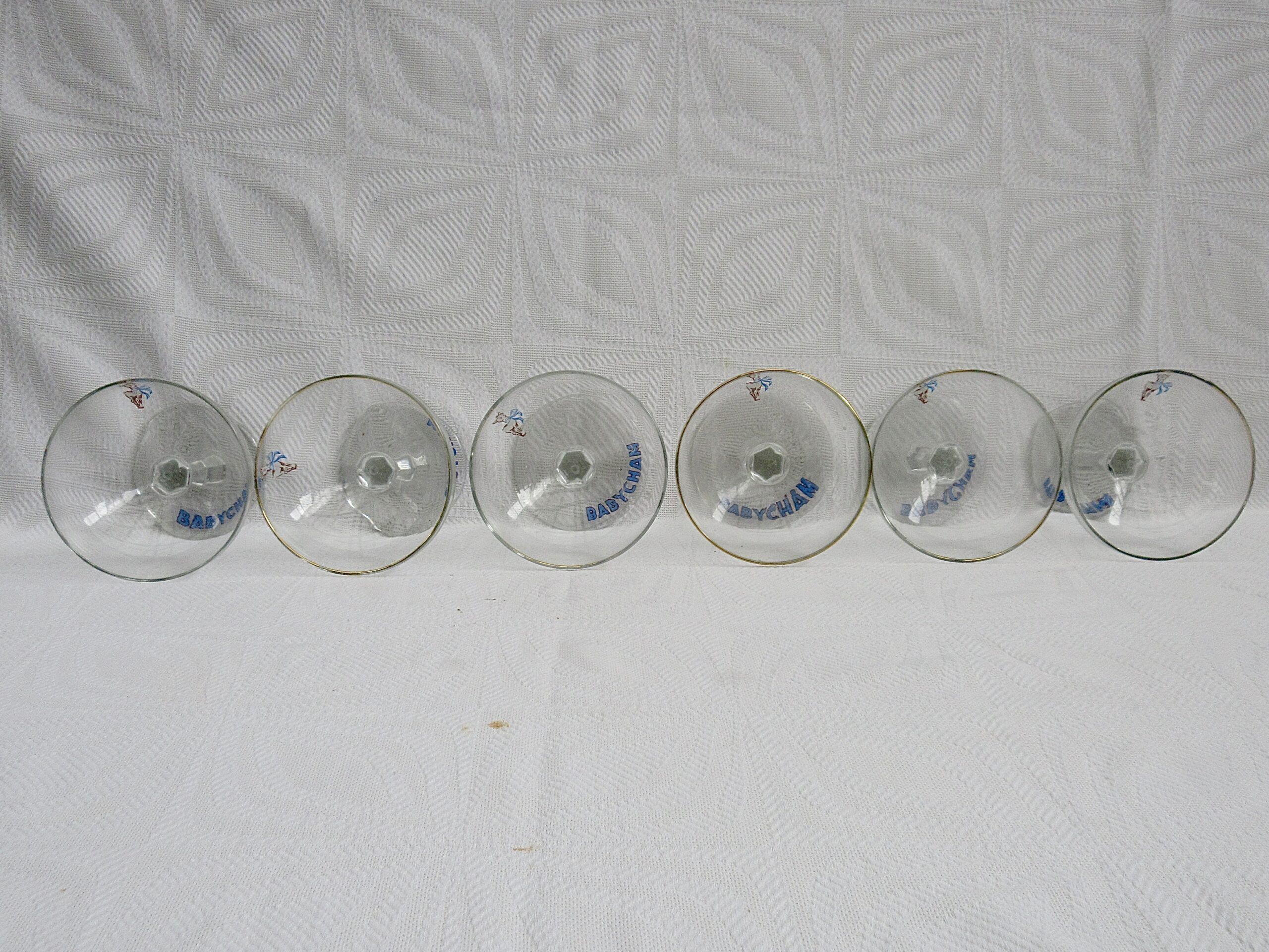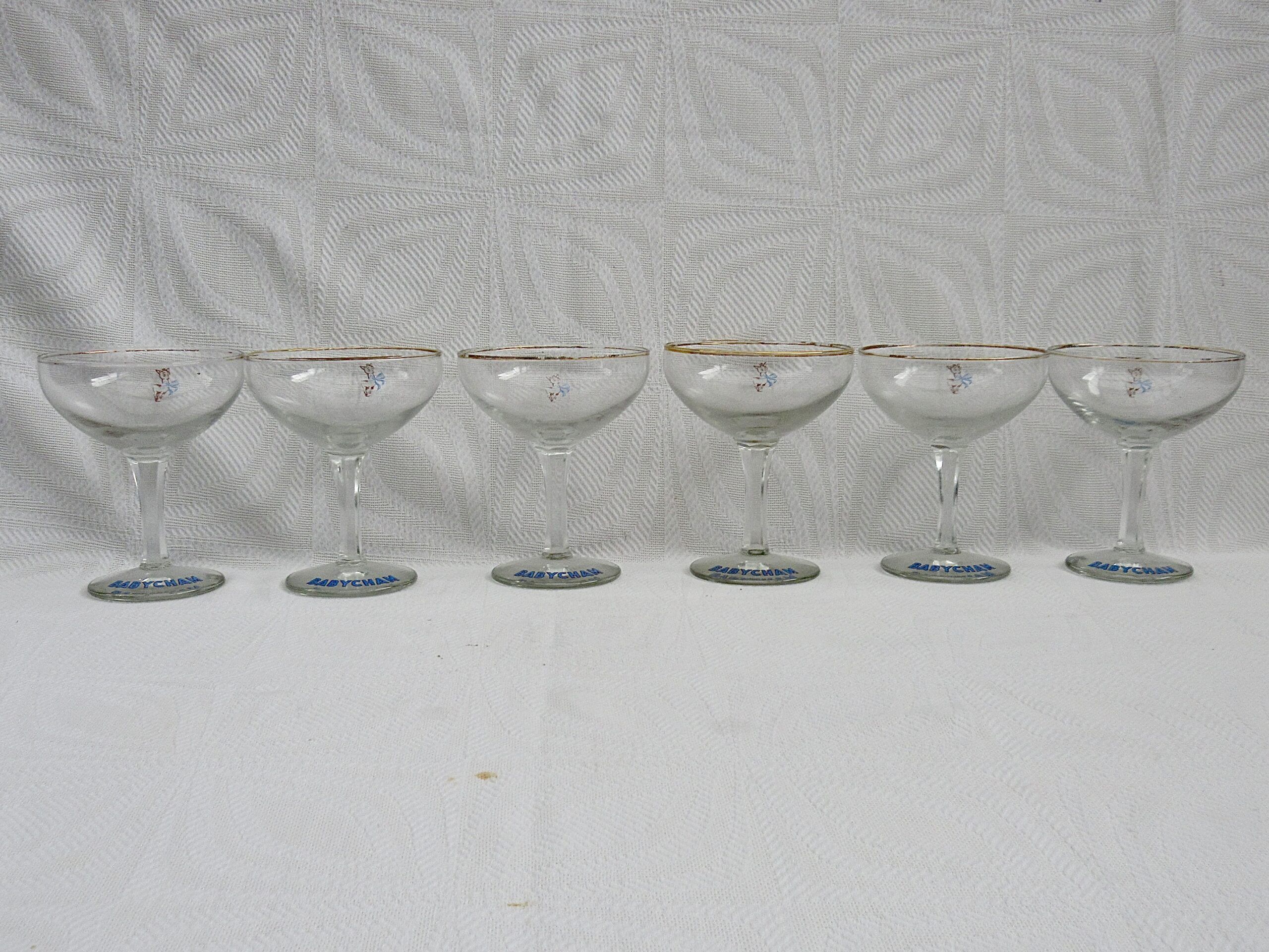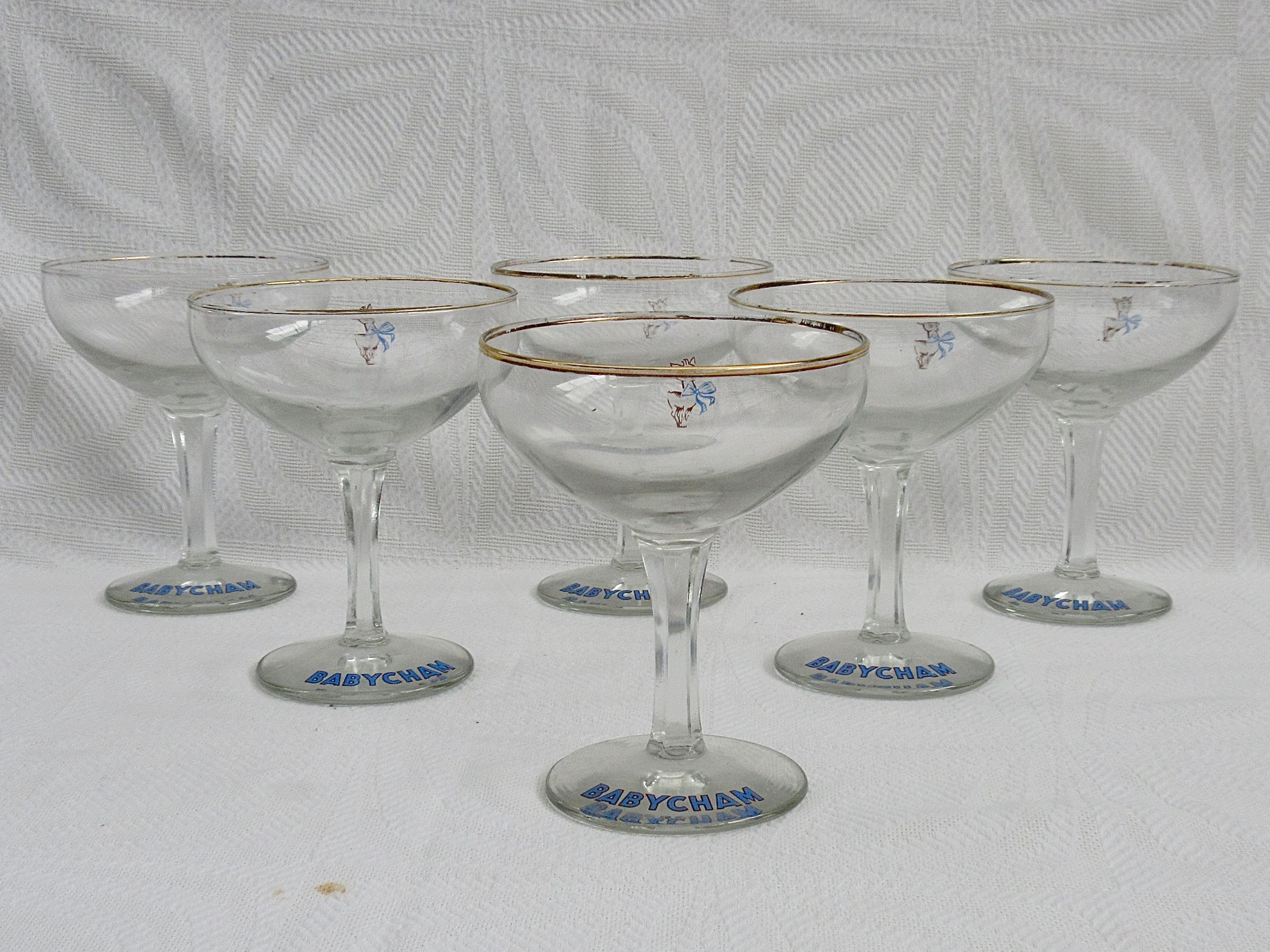 Vintage 1950s Babycham Glasses x6 White Fawn Hexagonal Stem
