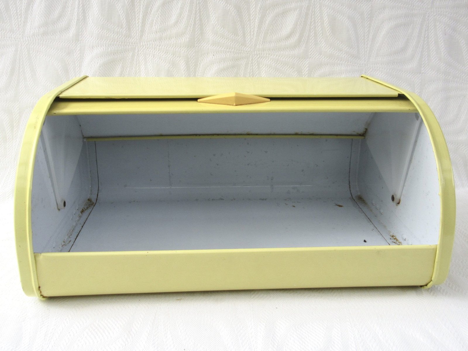 Vintage 1960s Yellow Bread Bin Classic Roll Top Metal