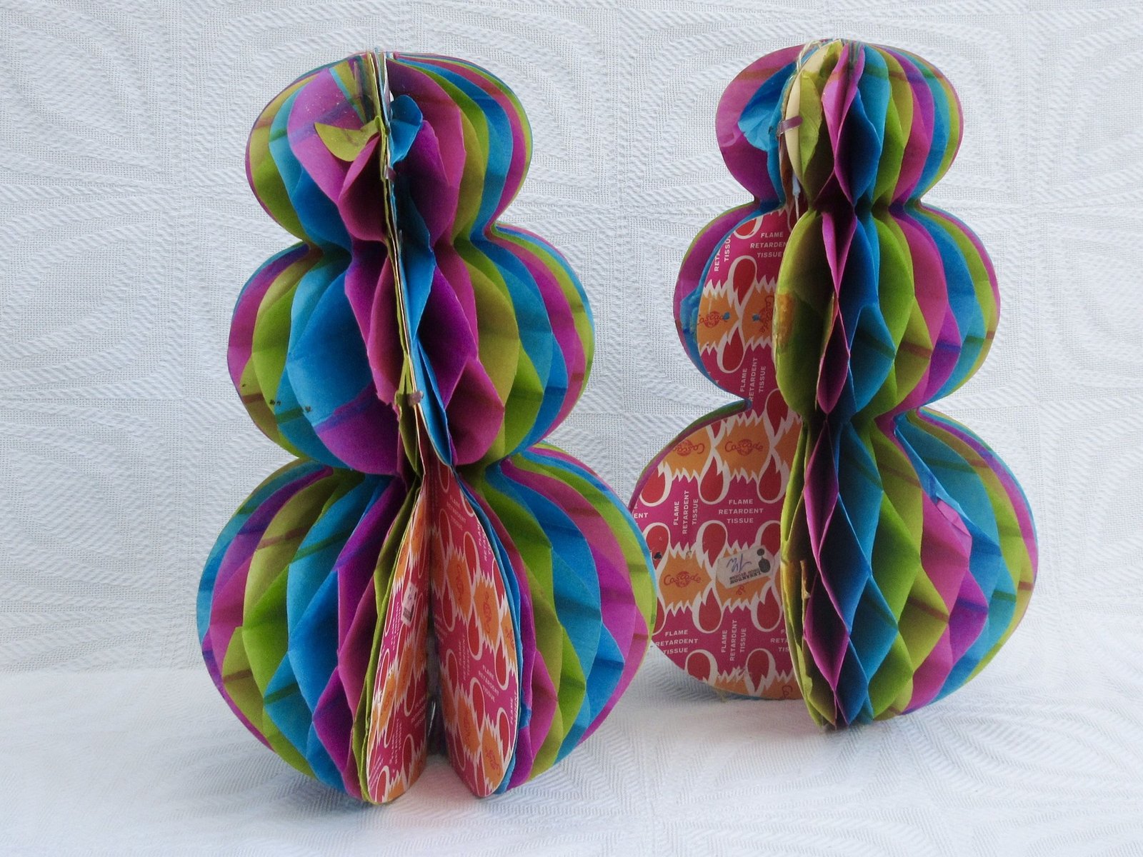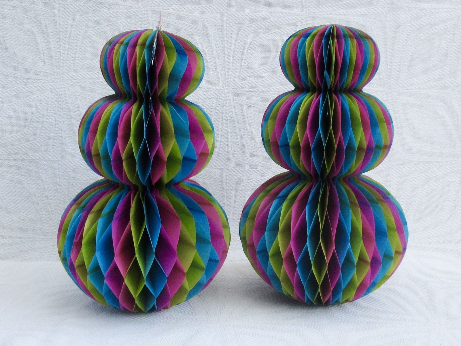 Vintage 70s 80s Honeycomb Christmas Decorations x2 Triple Sphere Snowman