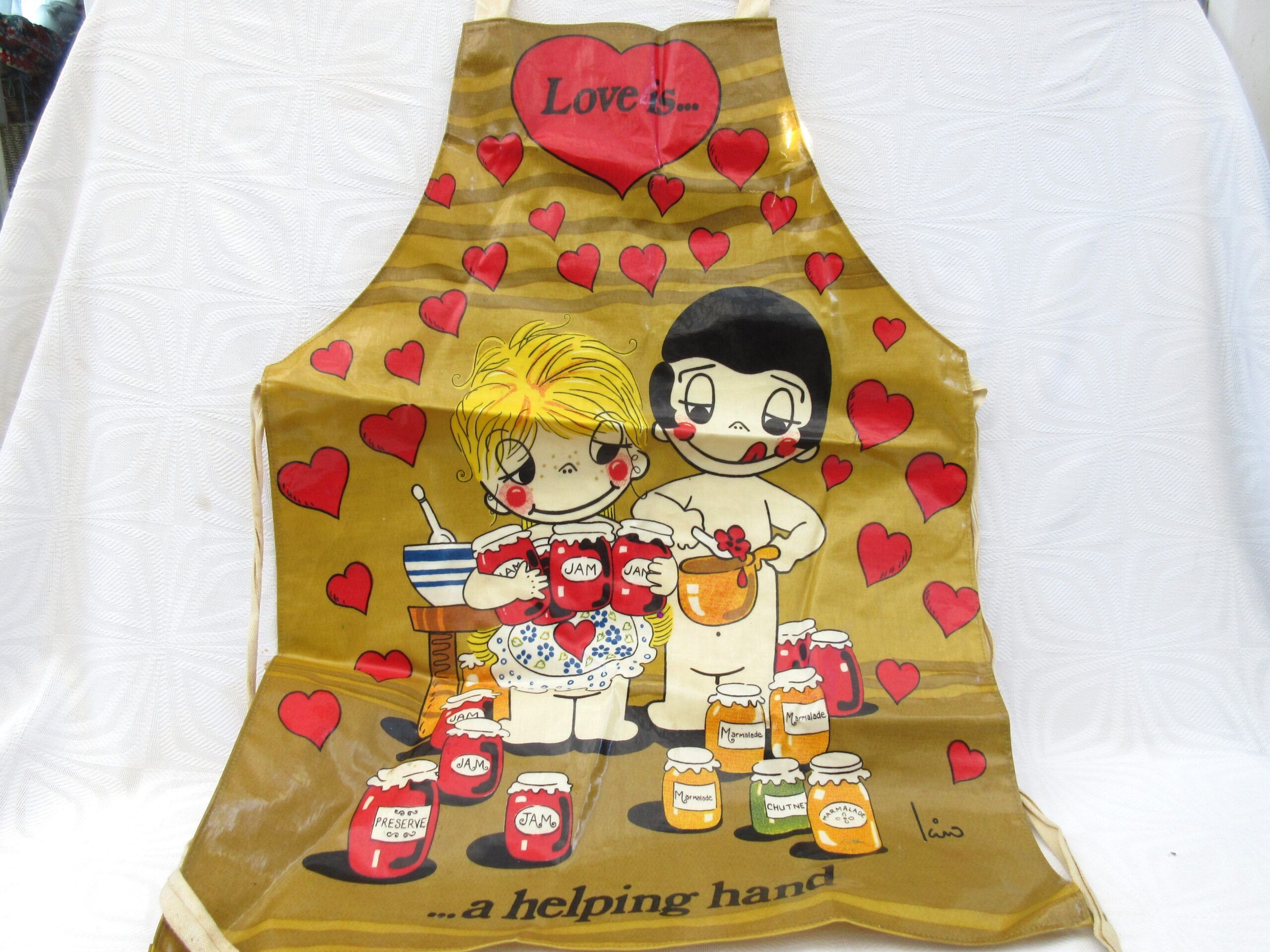 Vintage 80s Love Is Apron Cotton PVC Coated St Michael M&S.