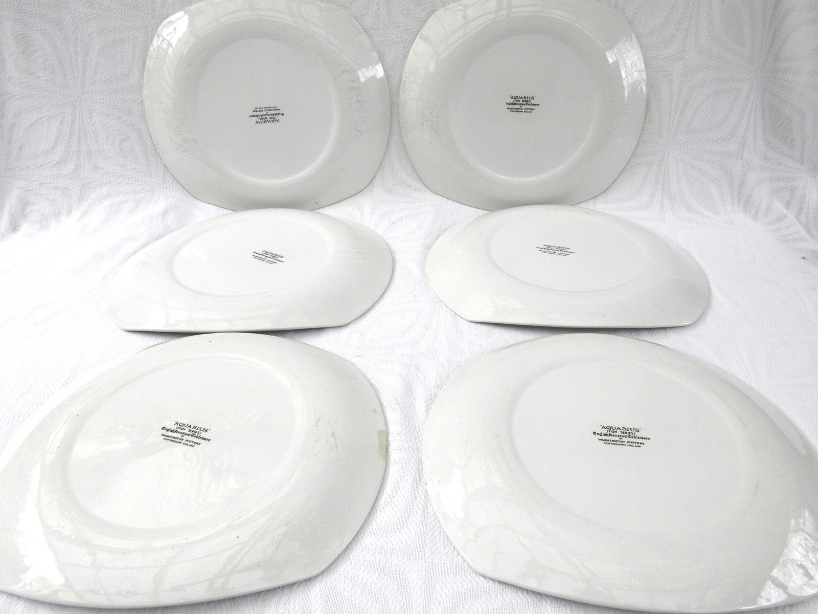 Noticeable issues: Most of the plates are in good condition for their age except the 2 blue/green ones. Fish plate blue green 1 has some chips on the front and back of the right edge – see photos of the chips. Fish plate blue green 2 has quite a bit of crazing and stains in the crazing, see photos (price reflected on these two plates). The other 4 are good with some crazing but minimal cutlery marks etc and no chips or cracks.