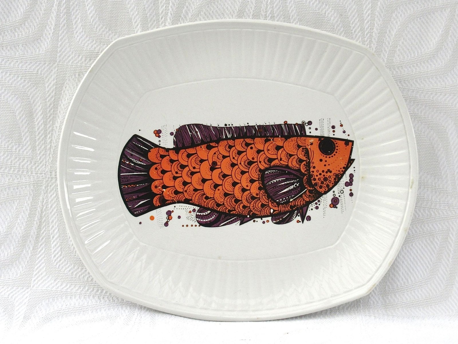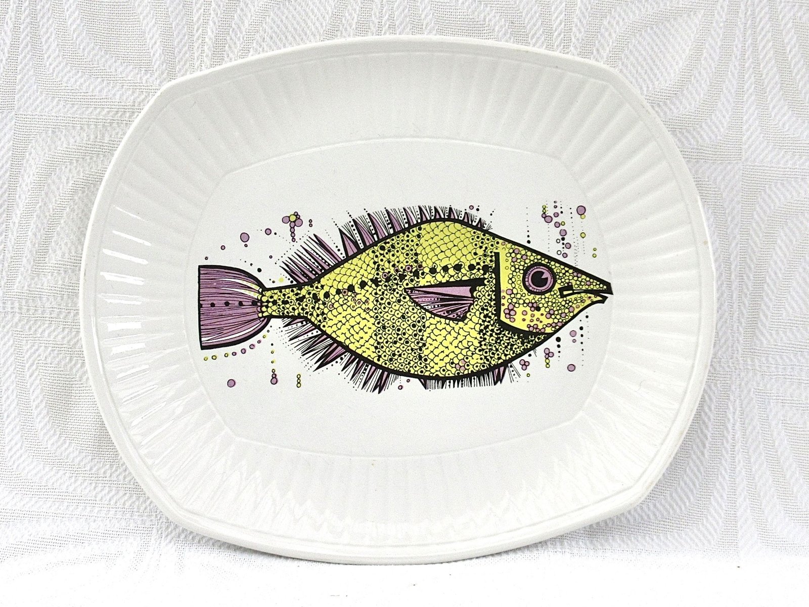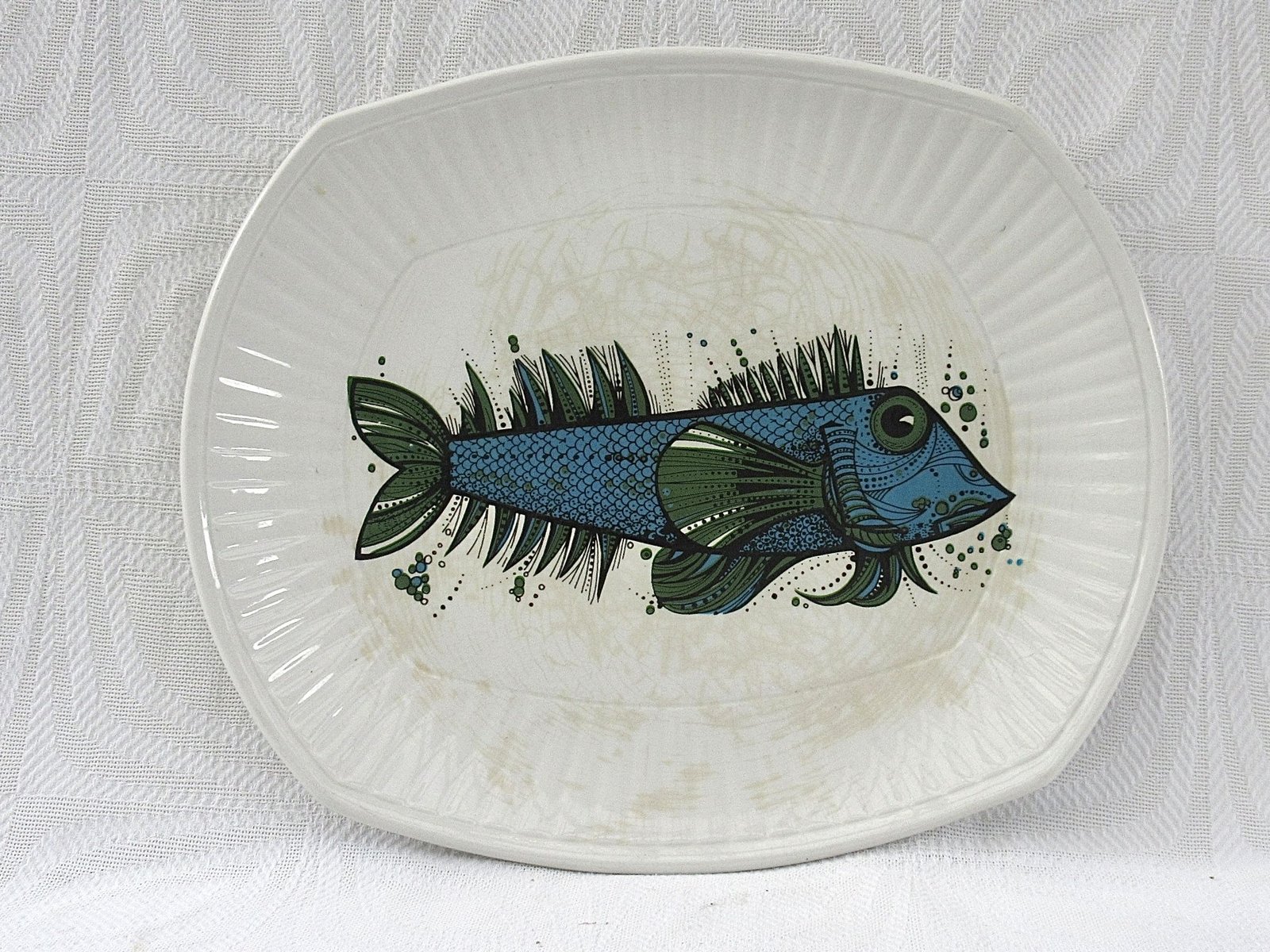 Vintage Aquarius Fish Plates Psychedelic Colours Late 60s – Choose Plate. These are very popular and sought after! And no wonder, as the designs are fab. Made by the same people who created the Beefeater plates with bulls and cows on. But this time its fish!