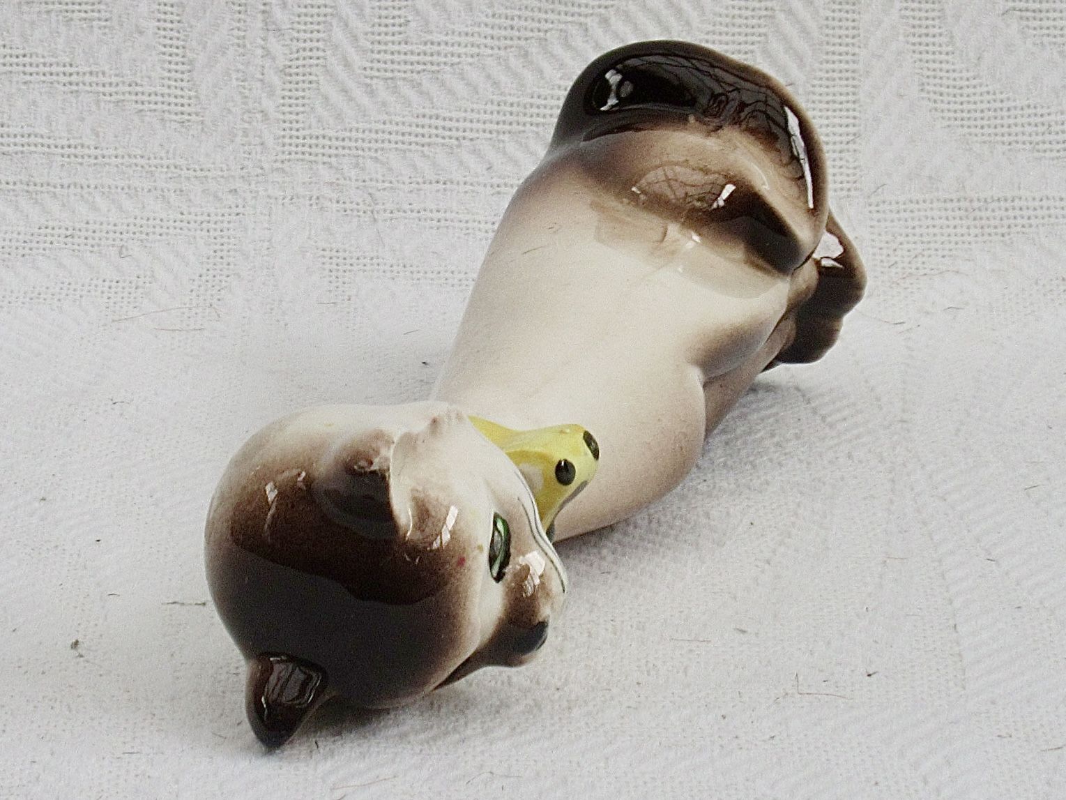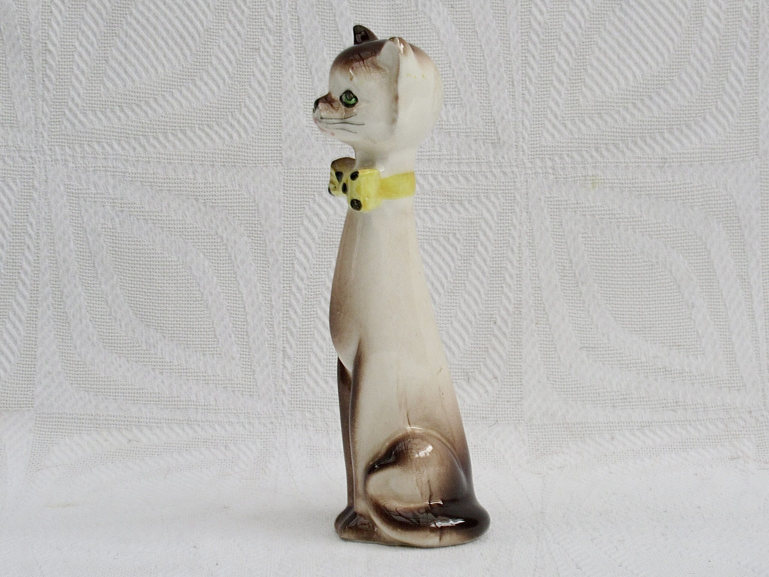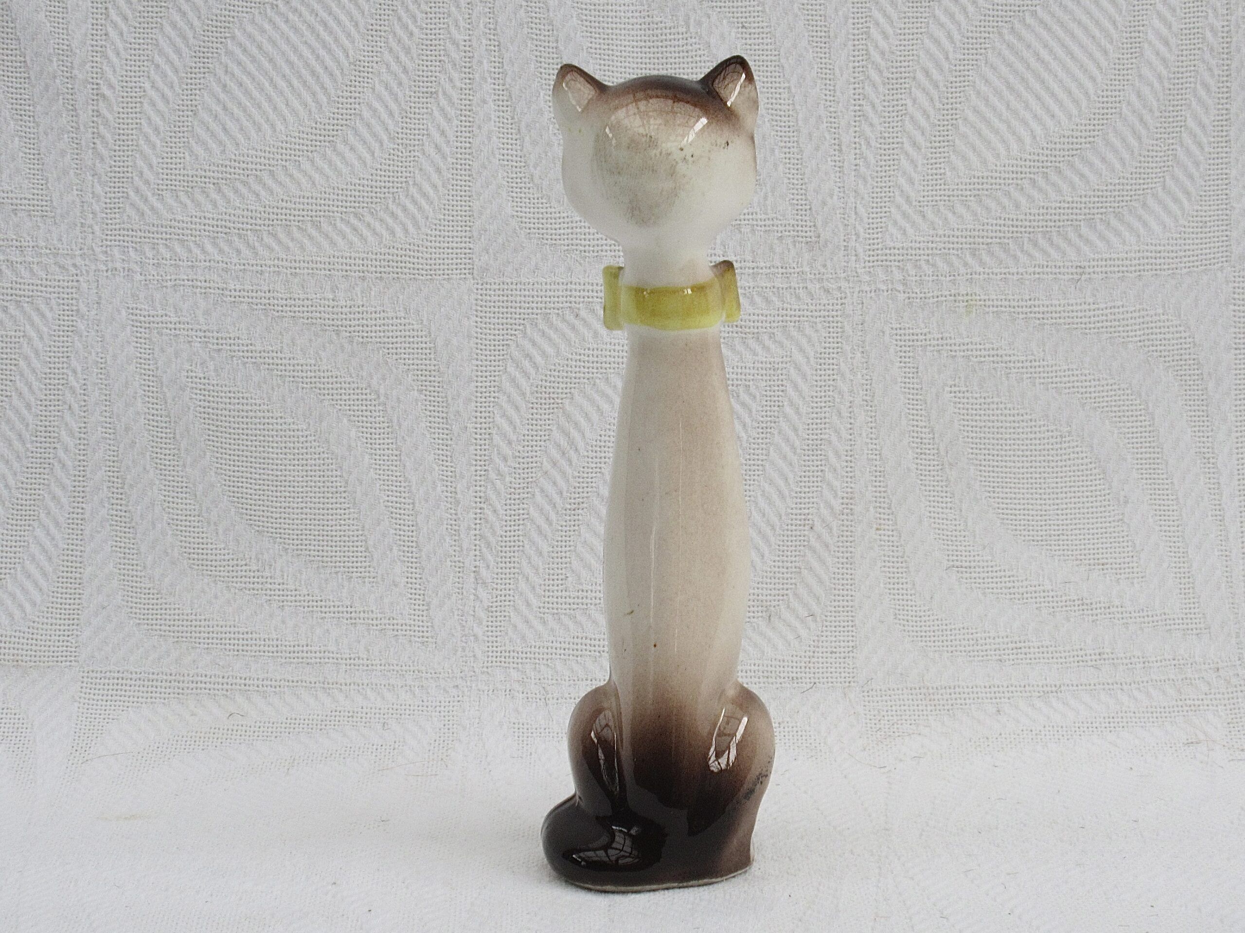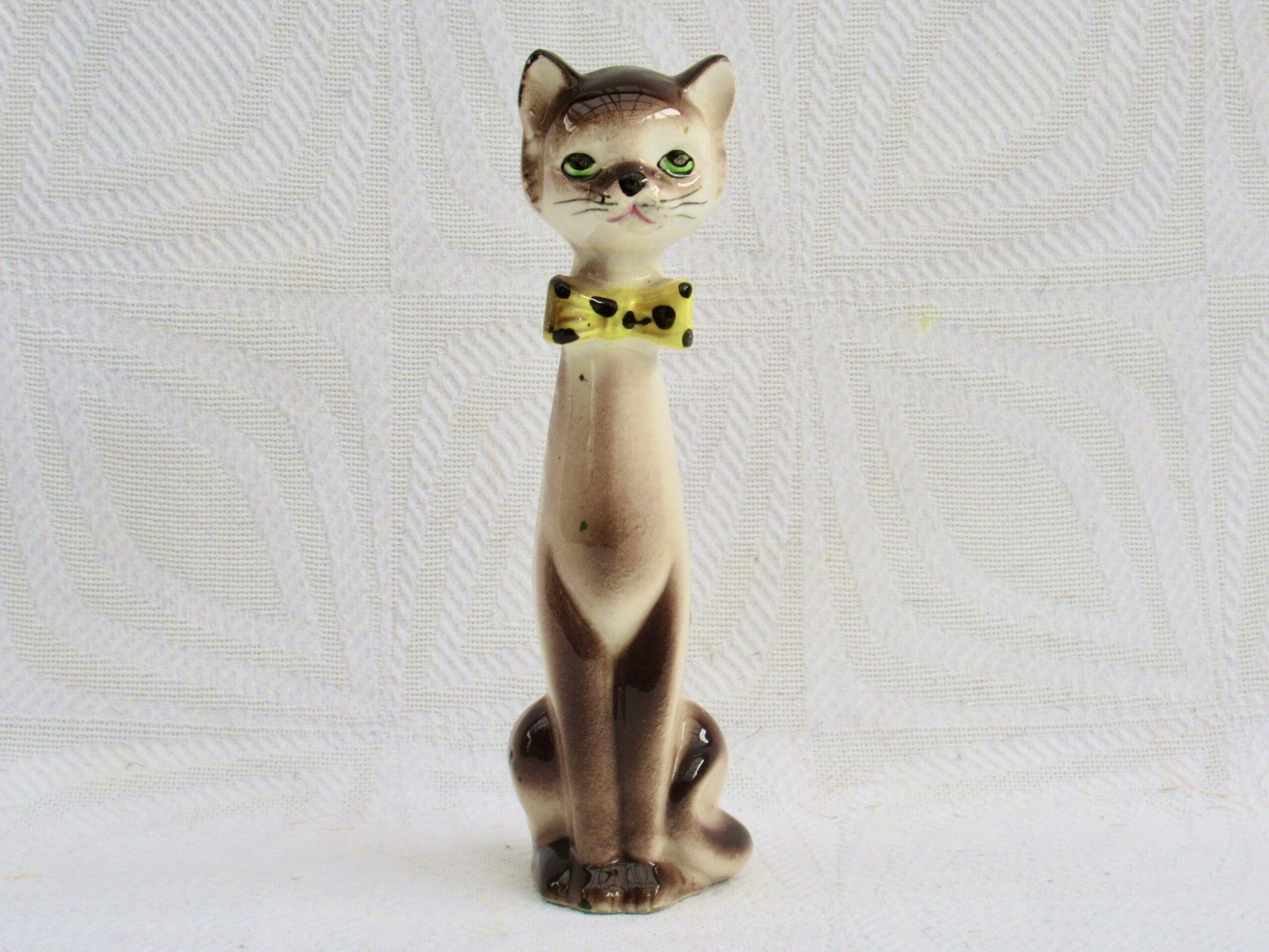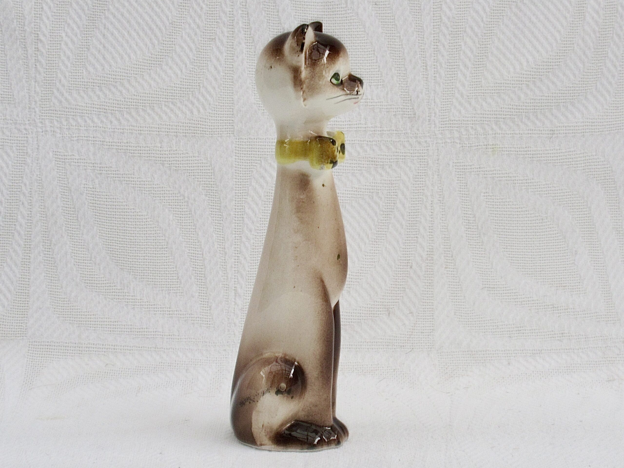 Vintage Ceramic Siamese Cat Ornament Sitting Cartoon Face 60s 70s
