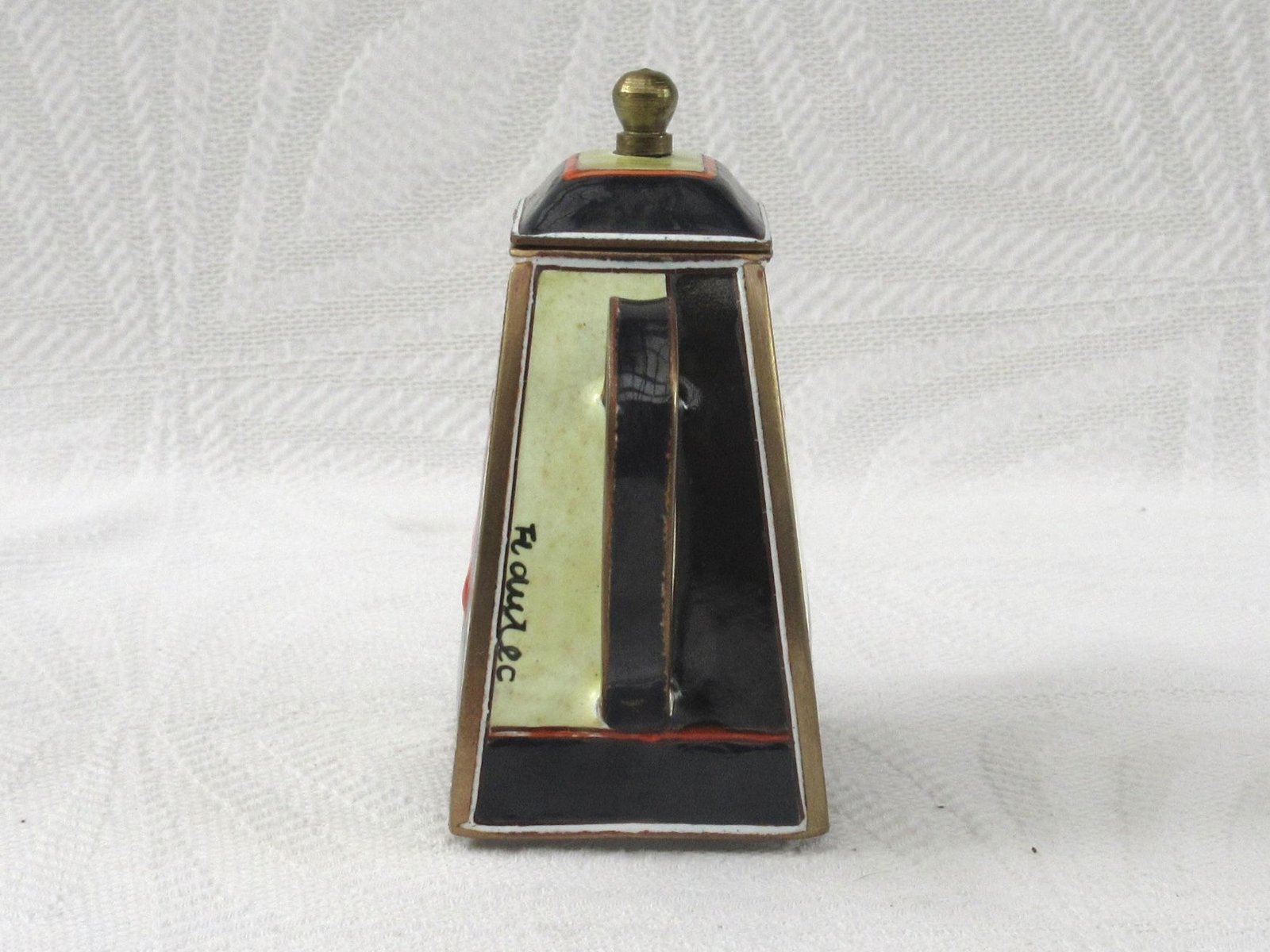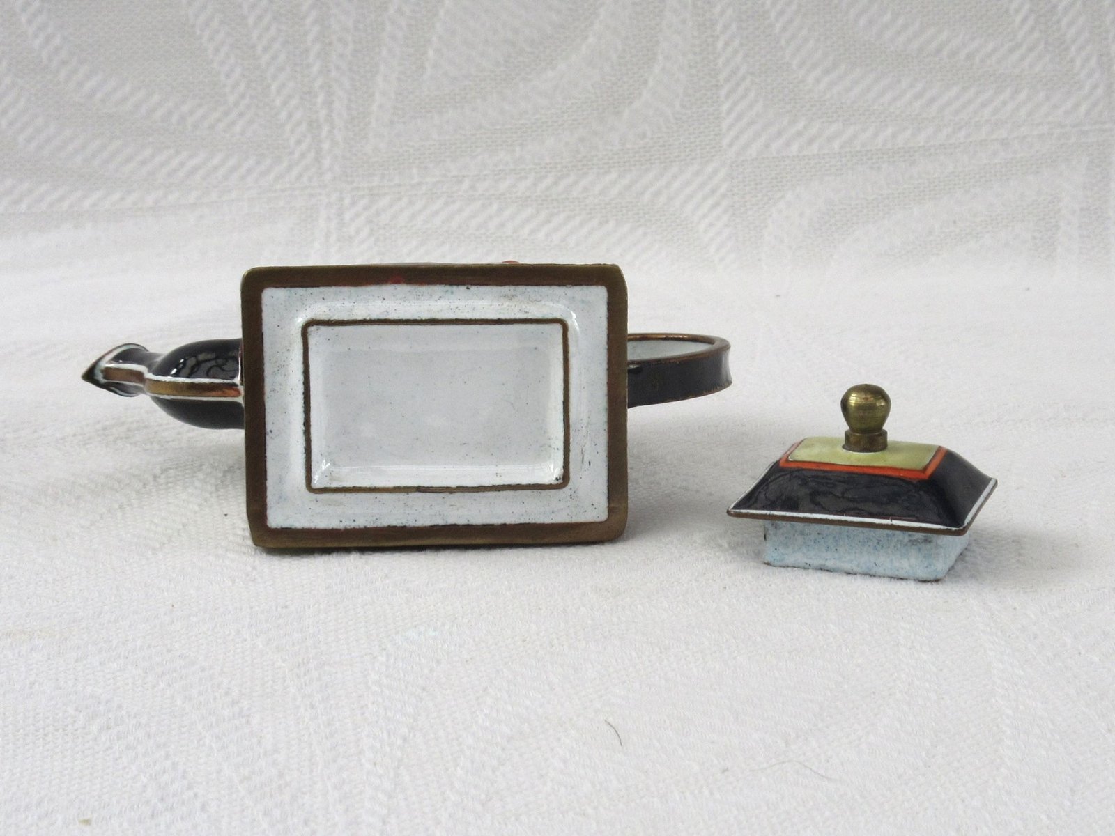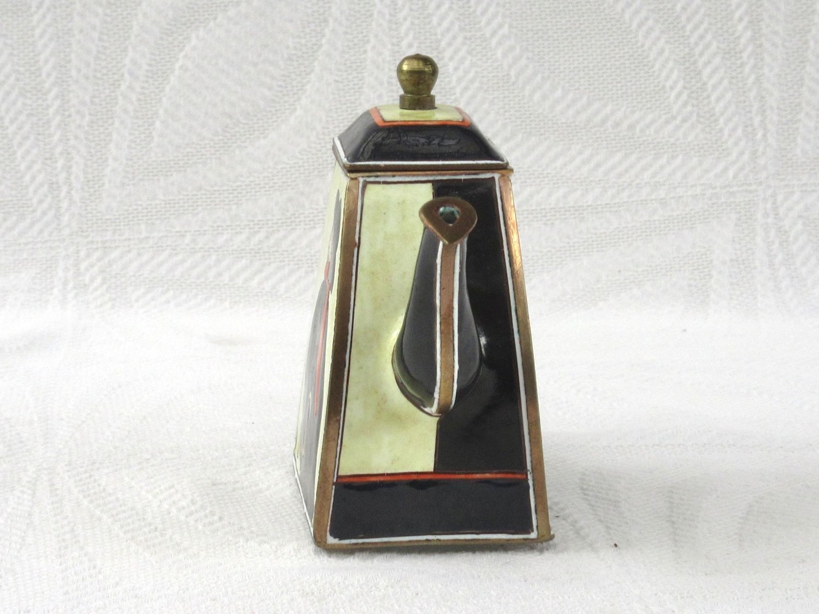 Vintage Kelvin Chen Miniature Enamel Teapot Lautrec Swordsman. Lovely decorative design, perfect for cabinet curiosities.