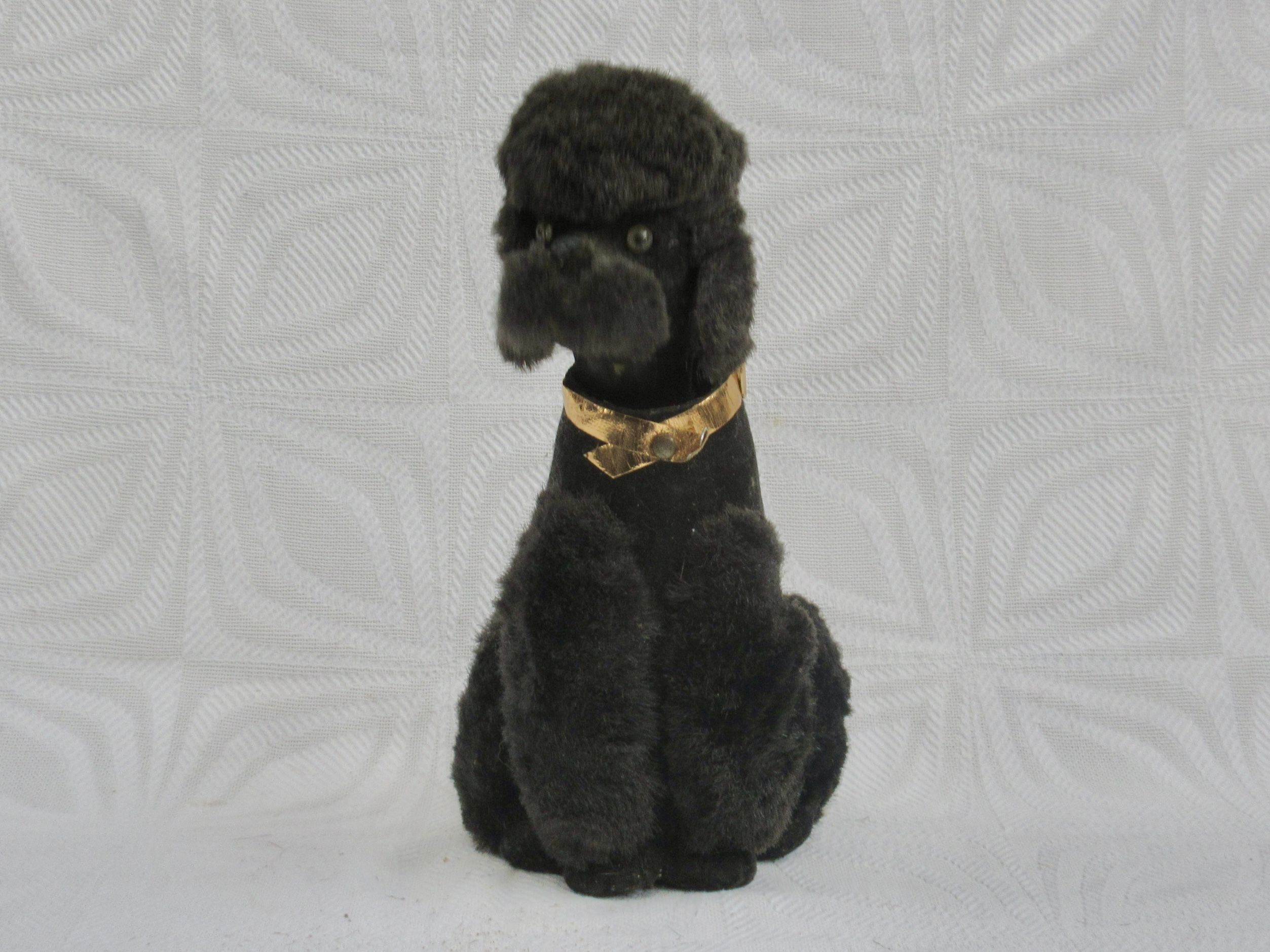 Vintage Kitsch Nodding Dog Black Poodle Sitting 50s 60s