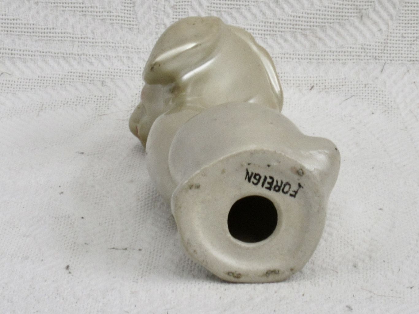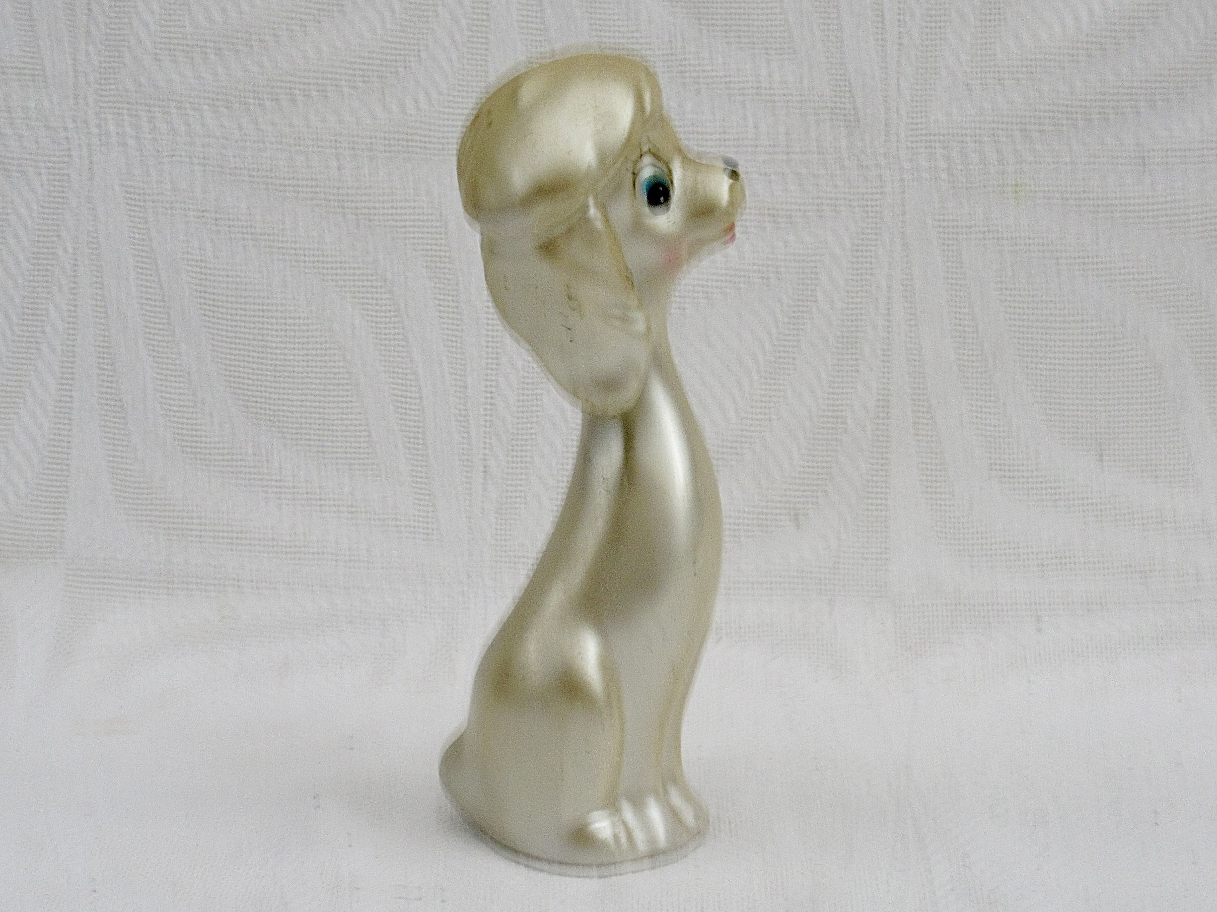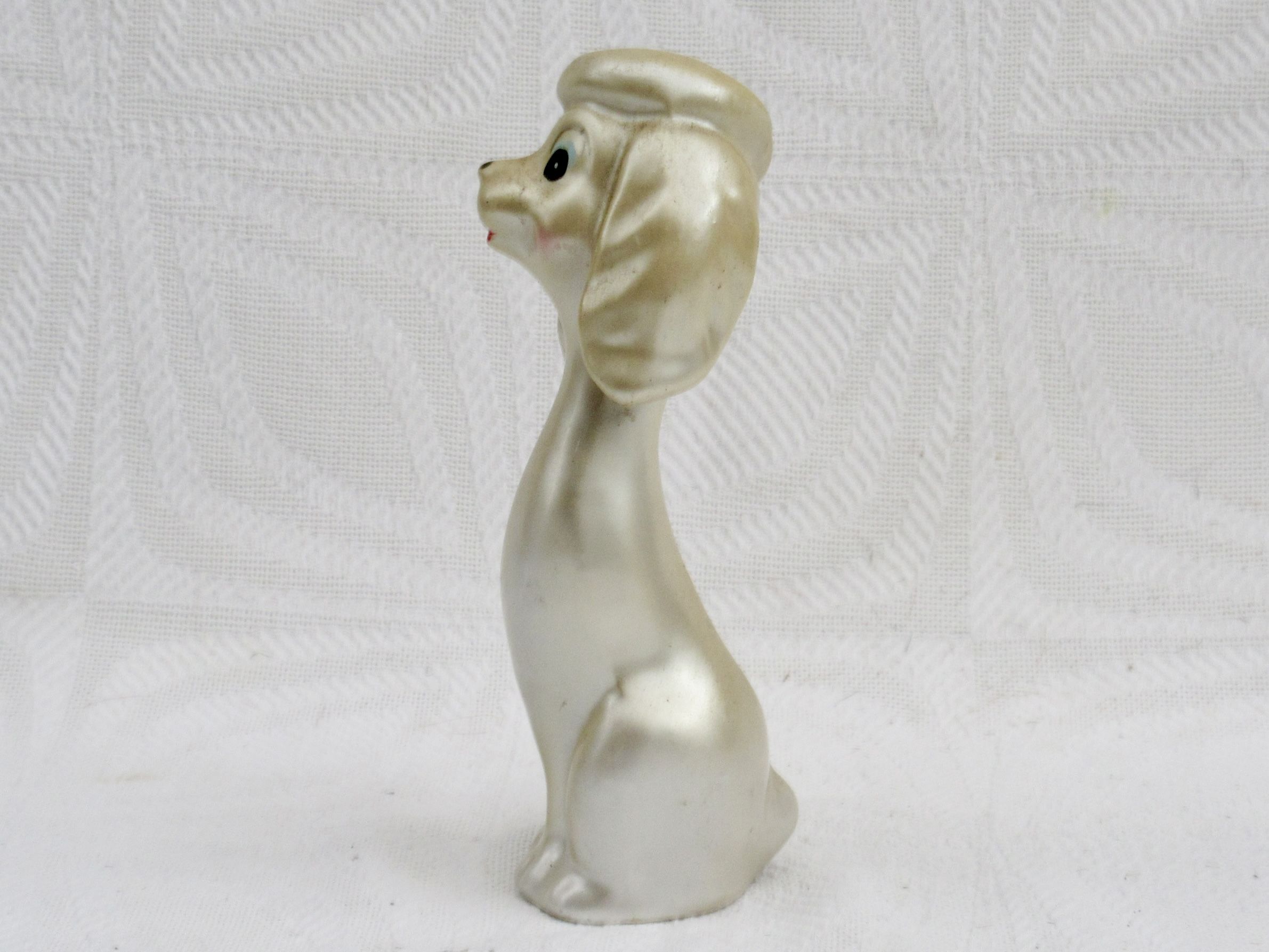 Vintage Lustre Dog Ornament Pearl Ceramic Cartoon Face Sitting 60s 70s – Wearing a Cute Beret!
