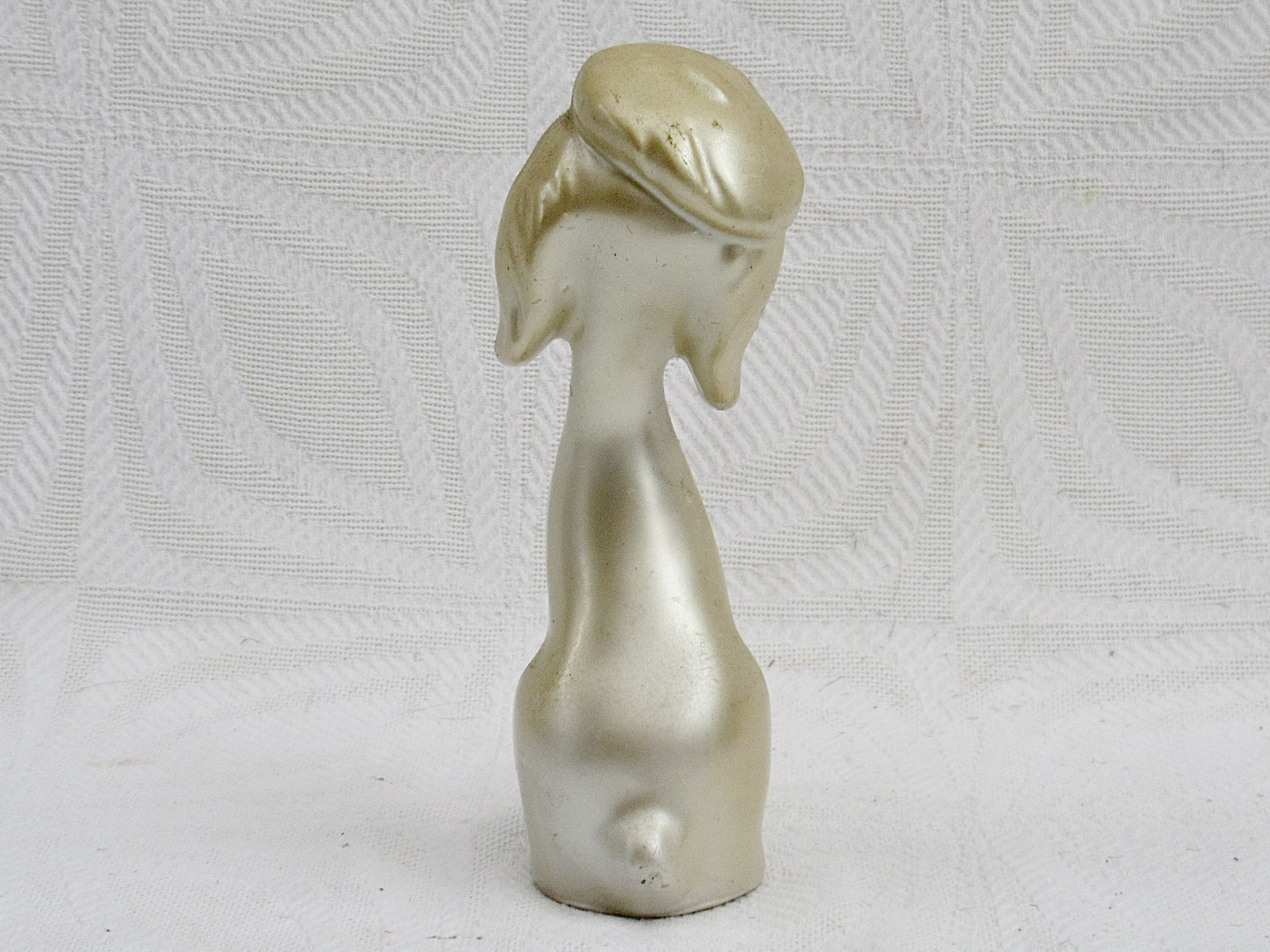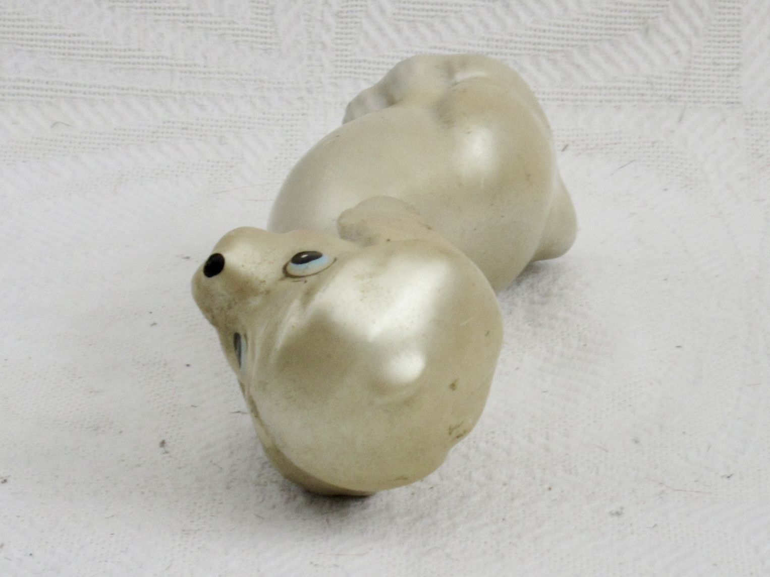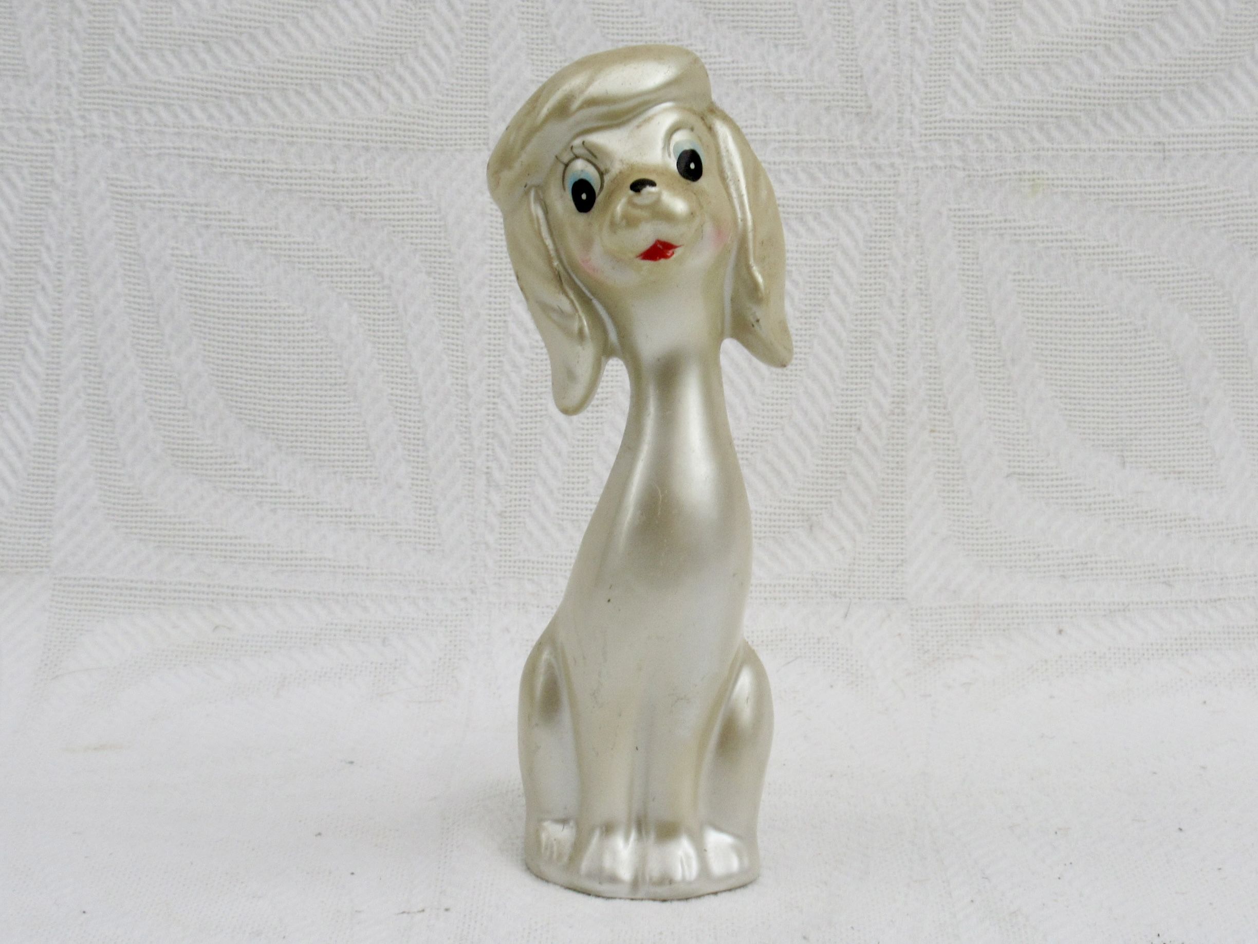 Vintage Lustre Dog Ornament Pearl Ceramic Cartoon Face Sitting 60s 70s – Wearing a Cute Beret!