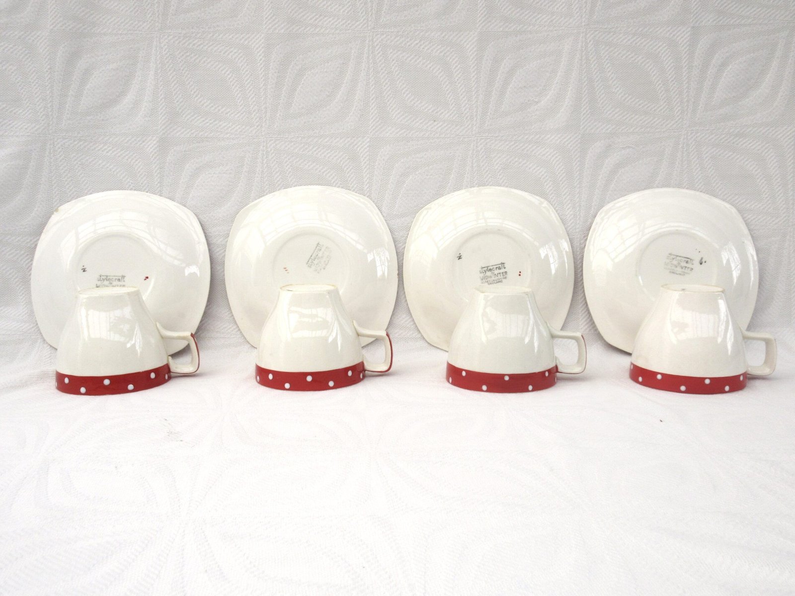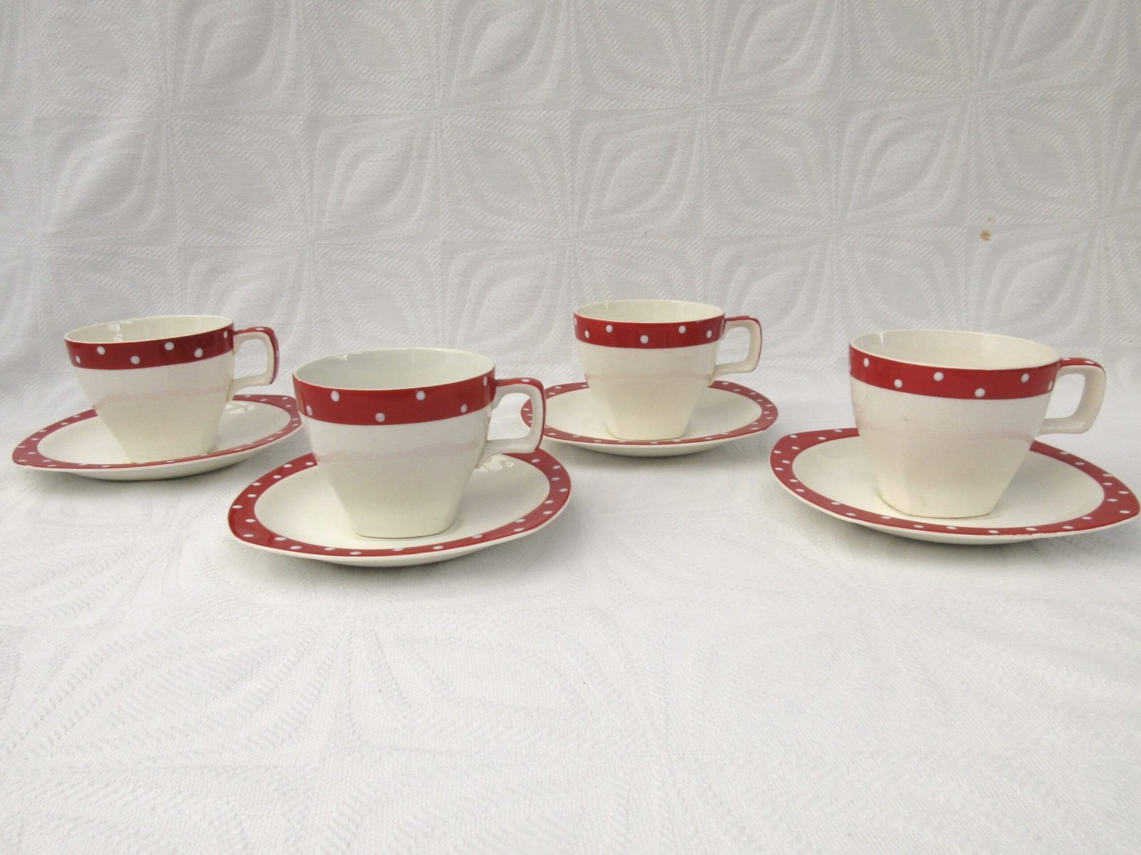 Vintage Midwinter Red Domino x4 Cups & Saucers 50s 60s
