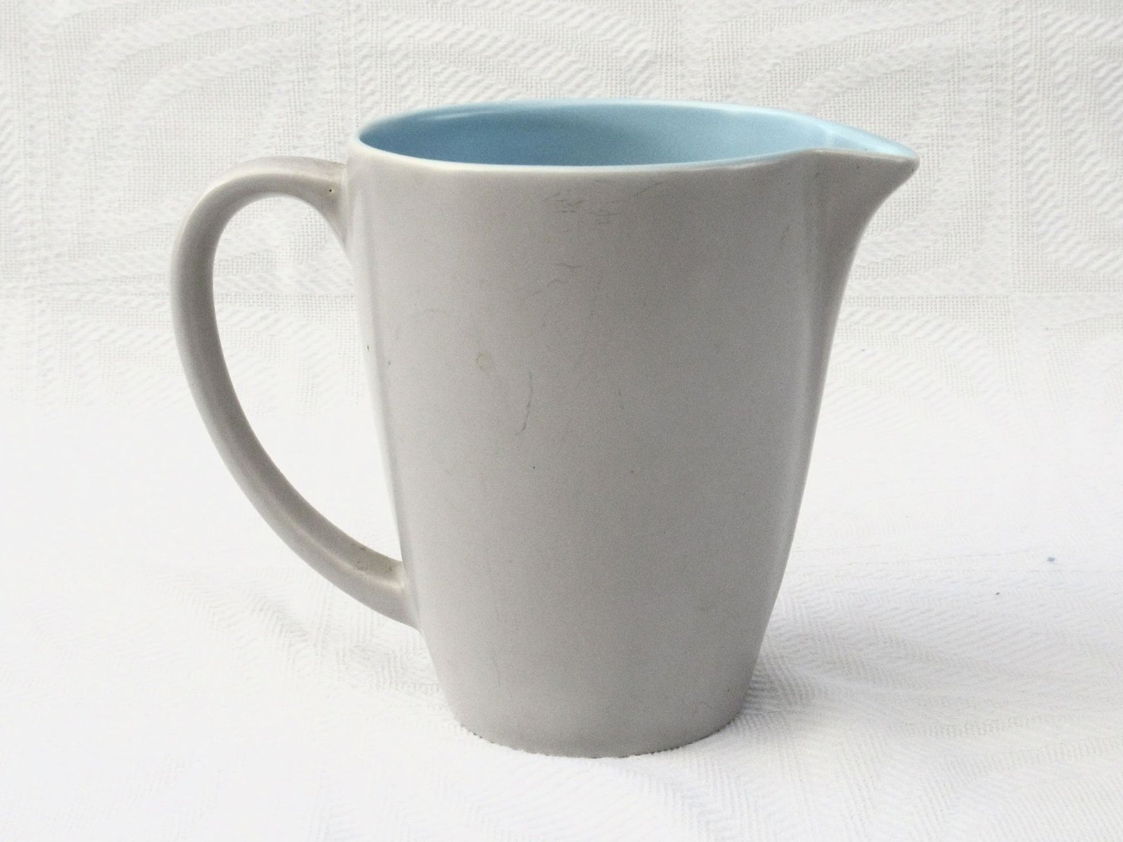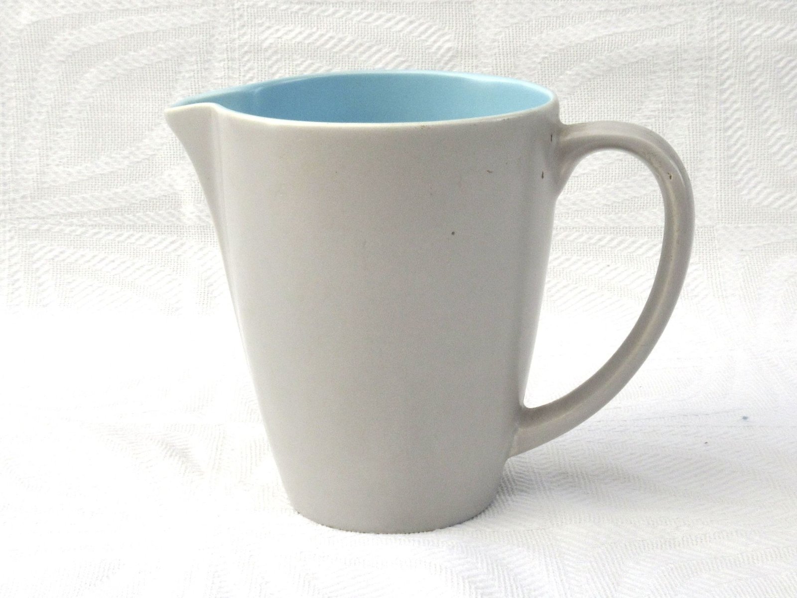 Vintage Poole Pottery Twintone Milk Jug Blue Grey 1960s. Outer in Dove Grey and inner in Sky Blue