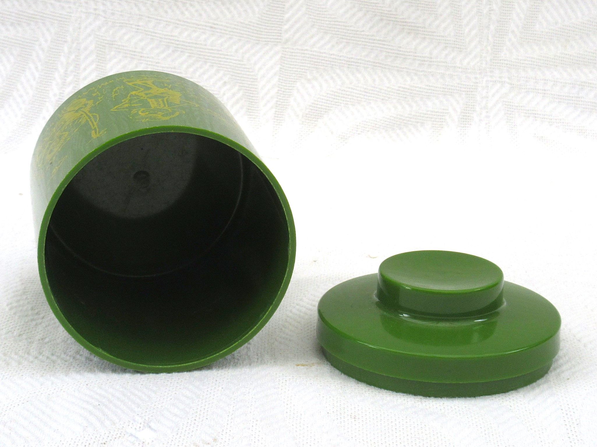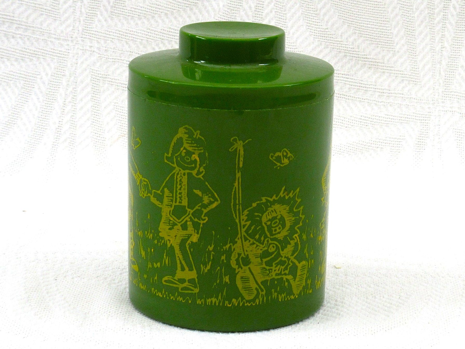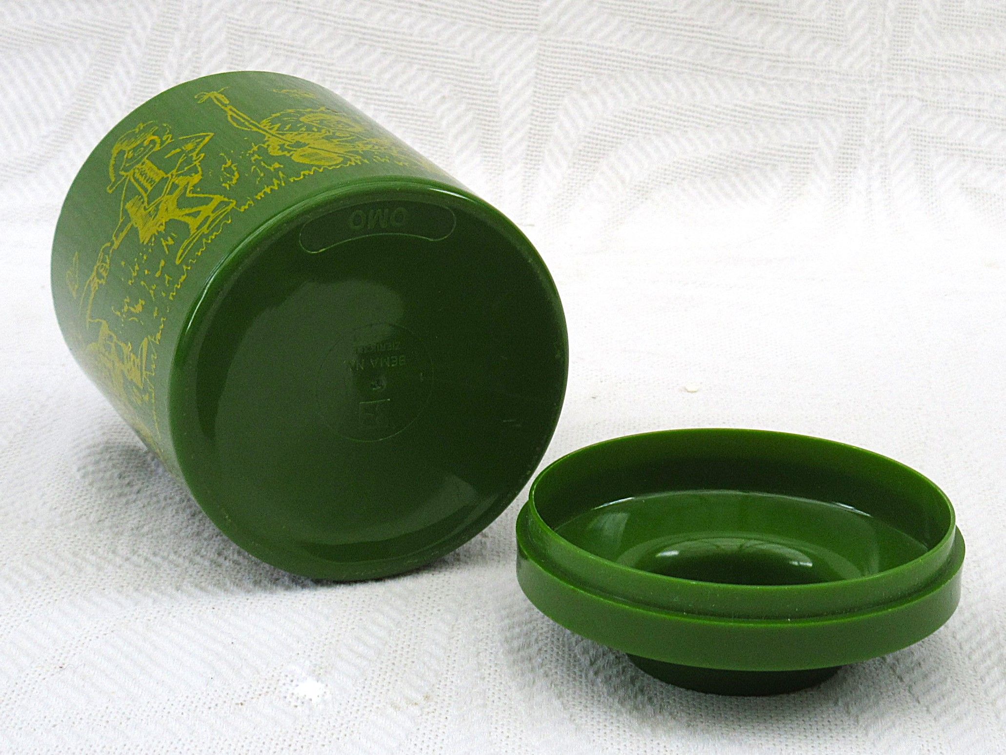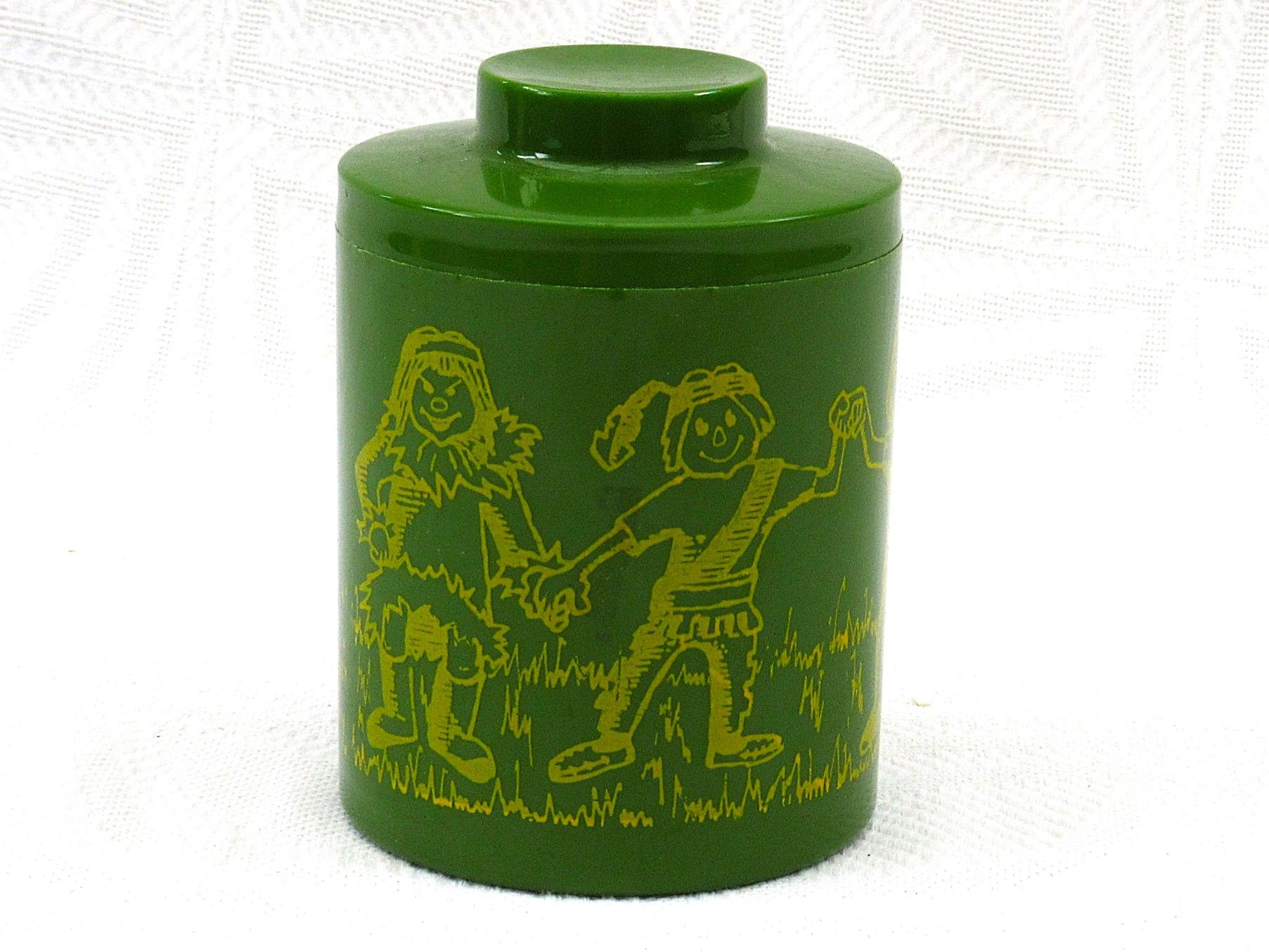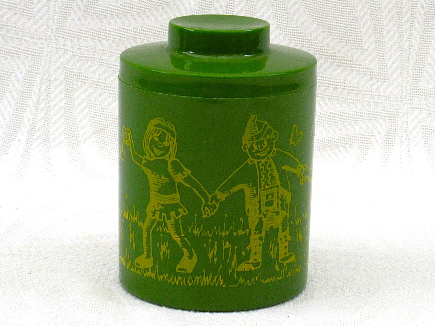 Vintage Scandinavian Green Plastic Pot Childrens Folk Illustration 70s