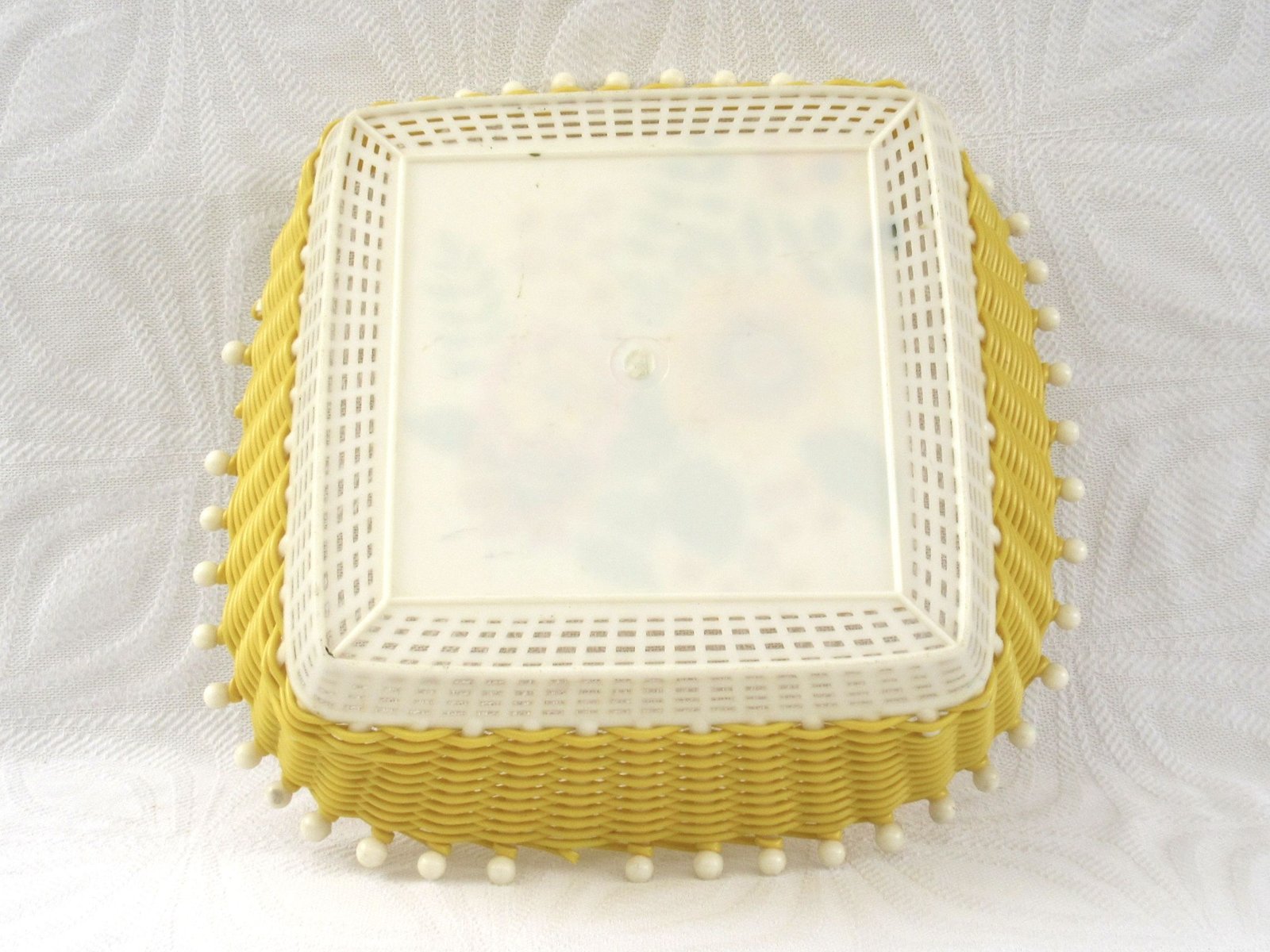 Vintage Yellow Plastic Wicker Floral Basket Smit & Co 60s 70s. Perfect for serving bread at the table or for display in a retro style kitchen.